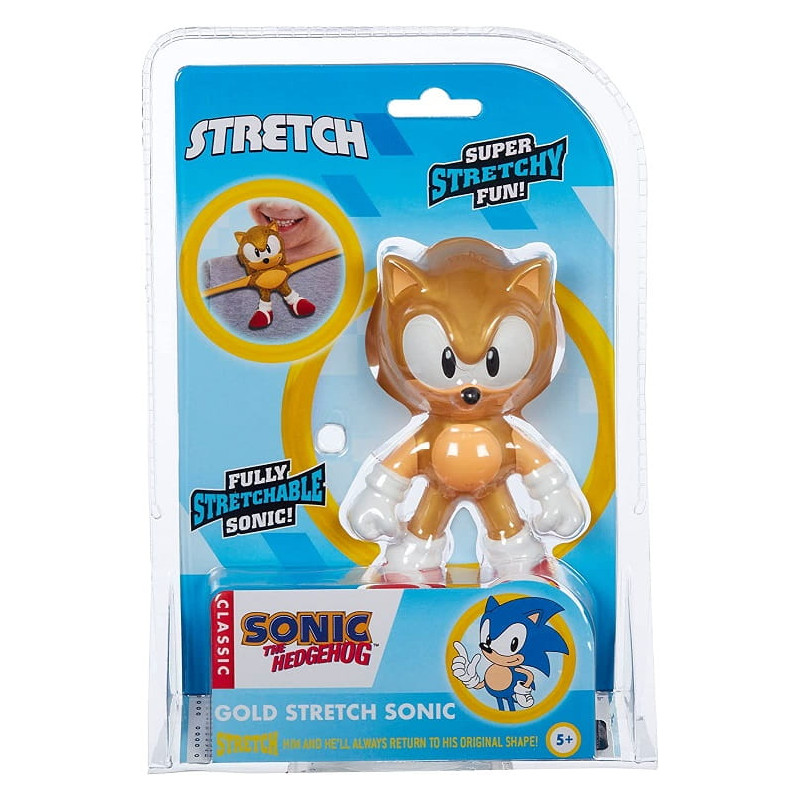 Mali fani superszybkiego Sonica mogą rozpocząć jeszcze ciekawszą zabawę z bohaterem w zupełnie nowej odsłonie! Tym razem rozciągliwa figurka Sonica jest złotego koloru, jednak nadal wiernie oddaje wygląd bajkowej postaci - wnętrze Sonica wypełnia specjalna substancja, jaka czyni go absolutnie niezniszczalnym. Figurkę można bowiem dowolnie rozciągać i ściskać, jednak ta zawsze powróci do swojego pierwotnego kształtu.